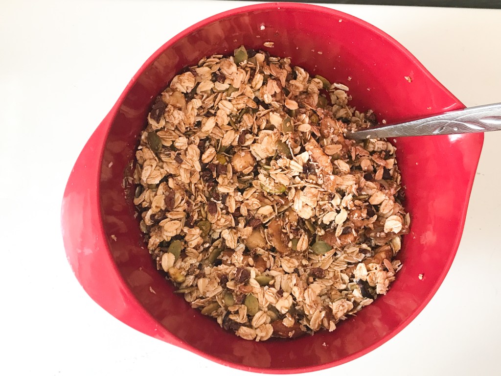 Hey everyone! I thought I would jump on here today to share my go-to easy granola recipe that I’ve been making for the last few months. It’s seriously so yummy! Not to sweet, lots of crunch, and pairs well with all sorts of different dishes (yogurt, oatmeal, pudding, or even just on its own as a snack or with some non-dairy milk). Plus it’s totally vegan and can be made gluten-free and mostly sugar free too if you’d like. All the mix-ins are optional so if you don’t like something, take it out! Or if you really love something else, add more in! Granola can be whatever you want it to be. Anyway, I don’t want to waffle on to much as I’m sure you just want to get to the recipe! So here goes: